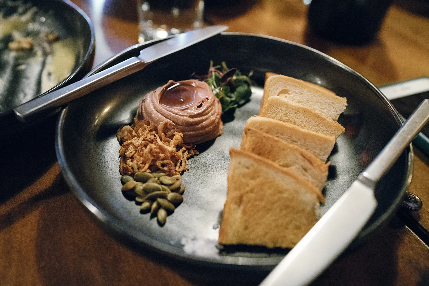 Chicken liver mousse is probably one of my top ten favorite things to eat. While this version was solid (love the milk bread), I can't help but compare it to my gold standard found at The Spotted Pig which has browned shallots, ruby port, and Madeira to give a touch of sweetness.